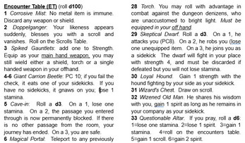 This simple game was designed to maximize the adventure while minimizing the number of dice rolls. Inspiration was drawn from Pocket Delver and Talisman. A compact game in an easy-to-read font!